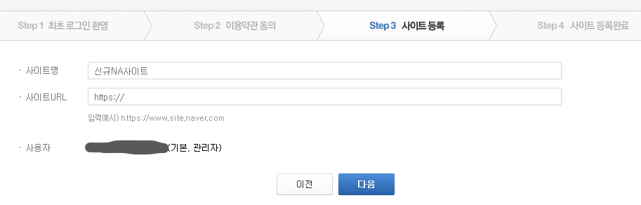 티스토리 블로그 주소를 쓰고, 사이트명은 구분할 수 있도록 입력합니다.