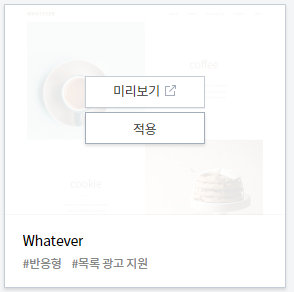 저는 여러 스킨들이 있는데 그 중에 하나로 'Whatever' 스킨을 골라서 설정하려고 합니다. 왓에버 스킨으로 고르는 이유는 모바일에서 보이는 스킨의 모습이 가장 깔끔해 보이기 때문입니다. 요즘은 모바일로만 주로 보잖아요. 그러니 모바일에서 보이는 화면이 중요해요.