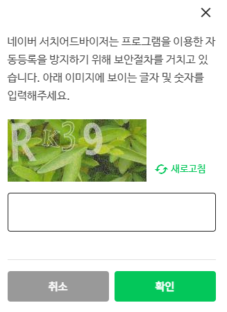 여기는 보안확인을 거칩니다. 보안 문자 입력하면 등록 완료.
