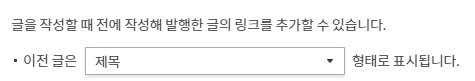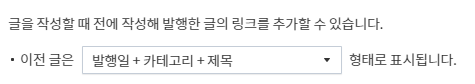 이전에 발행한 글을 일일이 찾지 않고 플러그인으로 해 두면 글 작성할 때 쉽게 넣을 수 있습니다. 이때 넣는 포맷을 바꿀 수 있는데, 기본 값은 아래와 같이 "발행일 + 카테고리 + 제목"으로 되어 있습니다.