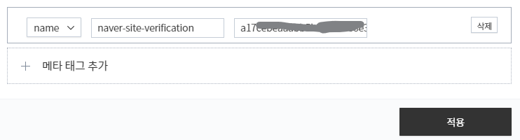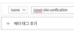 다시 티스토리 와서 name으로 된 것 확인하고 네이버에서 복사한 코드 붙여 넣습니다.