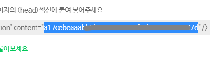 그럼 새로운 창이 뜨는데, 다시 네이버 서치어드바이저 가서 아래 부분을 복사합니다.