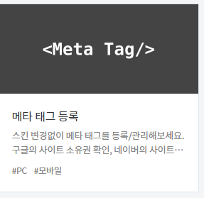 네이버에서는 <head> 섹션에 해당 코드 넣으라고 하지만, 티스토리에서 그럴 필요 없는 기능을 넣어주었습니다. 메타 태그 플러그인 이용하면 너무 쉽게 가능합니다.