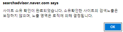 소유 확인이 HTML 편집 없이 쉽게 완료 되었습니다.