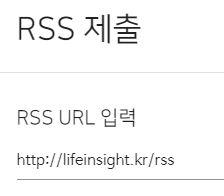 다음에 RSS 제출을 누릅니다. 여기는 주소를 전체를 쳐야 합니다. 자신의 블로그주소/rss 를 입력하고 확인누릅니다.