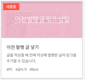 이전에 발행한 글을 일일이 찾지 않고 플러그인으로 해 두면 글 작성할 때 쉽게 넣을 수 있습니다. 이때 넣는 포맷을 바꿀 수 있는데, 기본 값은 아래와 같이 "발행일 + 카테고리 + 제목"으로 되어 있습니다.